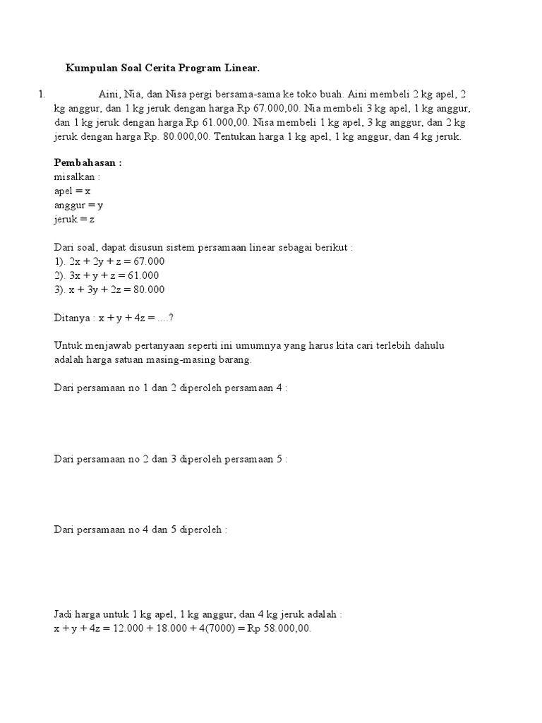 Contoh Soal Program Linear Yang Mudah from i0.wp.com Check spelling or type a new query. Maybe you would like to learn more about one of these? We did not find results for: Soal un program linear 2019.